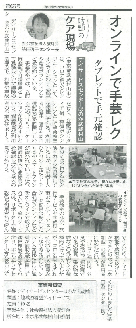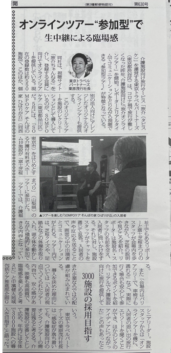 デイサービスセンターほのか武蔵村山様のレクリエーションへの取り組み取材の中で旅介オンラインツアーについてご紹介くださいました。