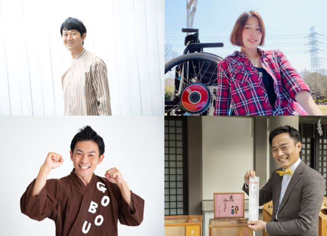 (出演者:上段左から:アキラ100%さん、眠梨桜さん、下段左から:ごぼう先生/簗瀬寛さん、しょーた☆)