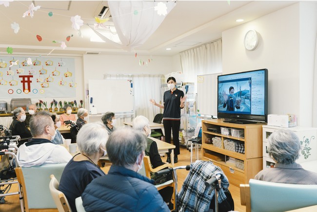 開始時間は介護施設のレクリエーションに合わせて14時~15時の1時間。生中継で配信されます。日本全国および海外からのご参加者は、出演者と同じ時間を共有します。