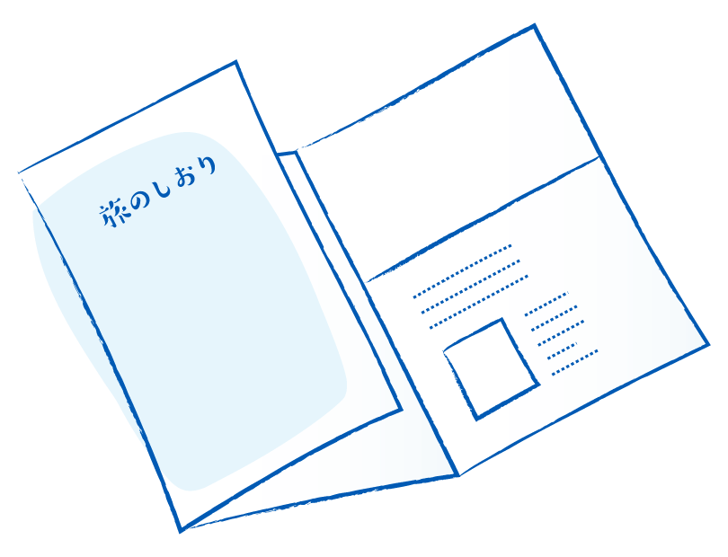 ご出発の1週間前に旅行に向けて旅のしおりのデータをお送りします。印刷して参加者にお配りください。カラフルな旅のしおりを見ていたら、ますますご旅行が楽しみになります。