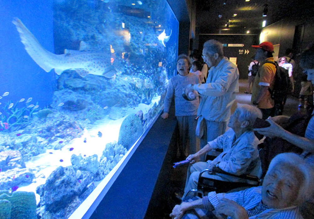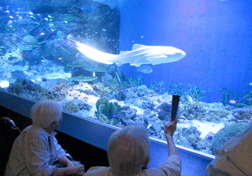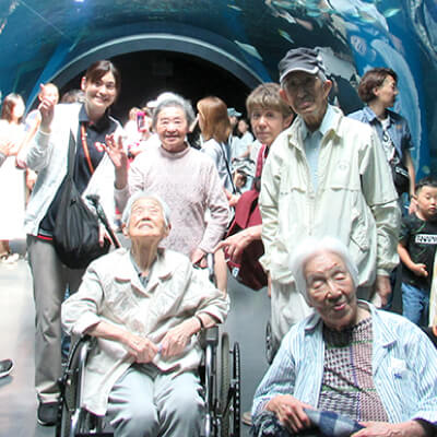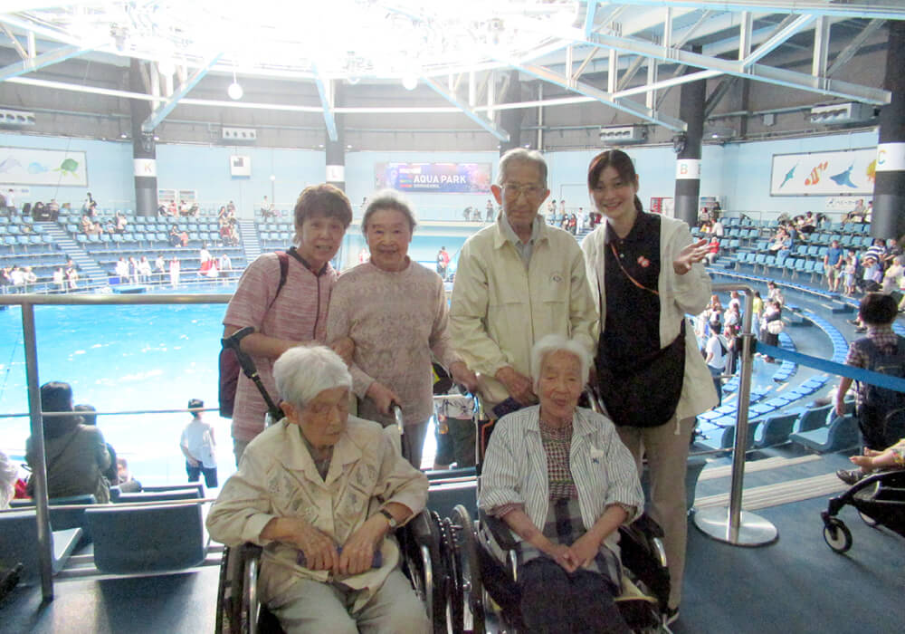 ツアー当日は出発時から「今日はどこ行くの?」と久しぶりの外出旅行に期待をされていました。お客様も「ホームに入居してからはなかなか水族館まで来る機会がなかったので楽しい」と仰せでした。みなさま優雅に泳ぐ魚やイルカに目を輝かせていらっしゃいました。当時ご参加されたお客様で100歳を迎えた方もいらっしゃいます。まだまだお元気なのでまた参加したいと仰せでした。